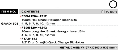 Bộ tuýp và vít lục giác 15 món GAAD1508