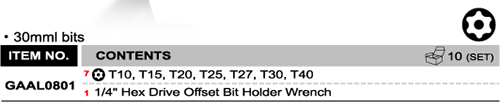 Bộ vít sao lỗ 8PCS 1/4" 30mm GAAL0801
