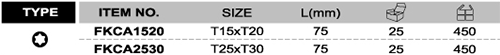 Model: FKCA1520 Kích cỡ đầu lục giác T15xT20 L=75mm |