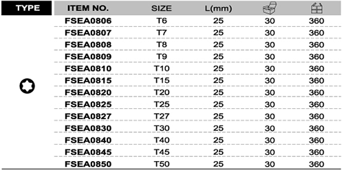 FSEA0806 / FSEA0807 / FSEA0808 / FSEA0809 / FSEA0810 / FSEA0815 / FSEA0820 / FSEA0825 / FSEA0827 / Kích cỡ FSEA0806: T6x25(L)mm |