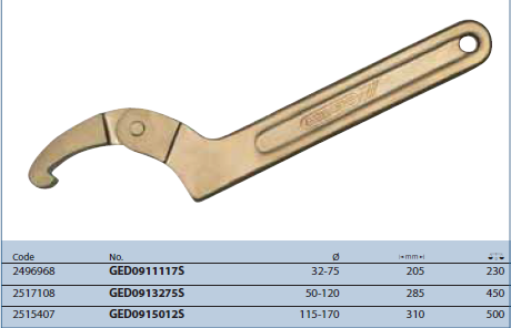 Loại đầu xoay móc cờ lê làm bằng nguyên liệu đồng cứng đặc biệt chống phát tia lửa điện