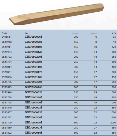 Đục làm bằng nguyên liệu đồng cứng đặc biệt chống phát tia lửa điện
