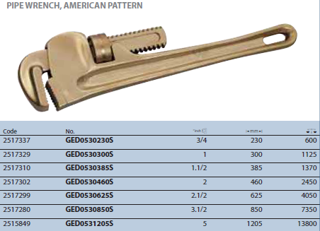 Mỏ lết răng làm bằng nguyên liệu đồng cứng đặc biệt chống phát tia lửa điện