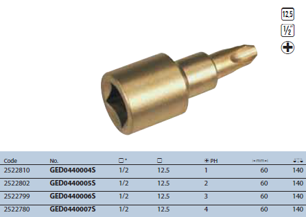 Tuýp 1/2" đầu vít chữ thập PH1 GED0440004S Gedore