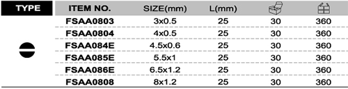 Model: FSAA0803 Kích cỡ: 0.5x3x25(L)mm |