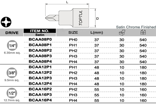 Vít ba ke 1/4" Dr. x PH#0 L=37mm